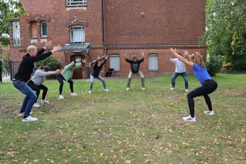 - Der Raum, in welchem der Pausenexpress stattfindet, sollte möglichst so groß sein, dass alle Teammitglieder plus Trainer*in darin Platz finden. Tische und Stühle im Raum sind kein Problem. Optimal: Jede Person hat doppelte Armlänge Platz.