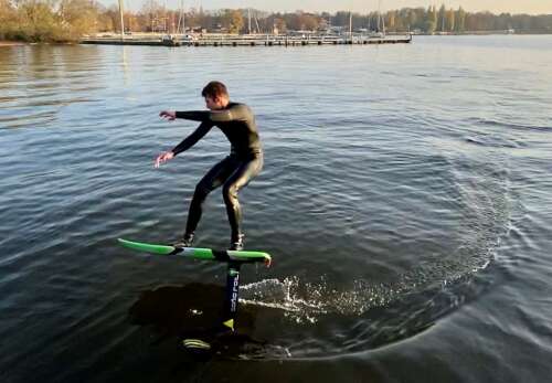 Glide over the water with the Hydrofoil without any motor, wind or waves. Through the pumping motion of the surfers*innen generate the "wings" of the Foil up- and propulsion, so that you glide purely from body power over the water. Objective: An introduction to the trend sport is given and the safe handling of the equipment is taught. The course teaches the "dock start" from the dock, the pump movement and a safe fall method. At the end of the course, participants will have mastered the basics so that they can continue to train independently. Picture source: Leonard Stief