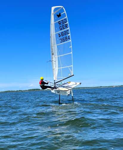 Der Einstiegskurs in das sehr sportliche Dinghy-Foiling findet an zwei Tagen, mit insgesamt ca. 8 Stunden statt.