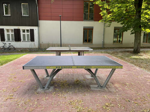 Außerhalb des Kursbetriebs können die Outdoor-Tischtennis von allen Hochschulangehörigen und auch Externen zum freien Spiel genutzt werden. Bitte geht sorgsam mit den Tischen um, verhaltet Euch rücksichtsvoll gegenüber allen Teilnehmer*innen und entsorgt Euren Müll in den umliegenden Mülleimern.